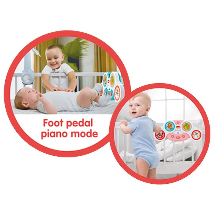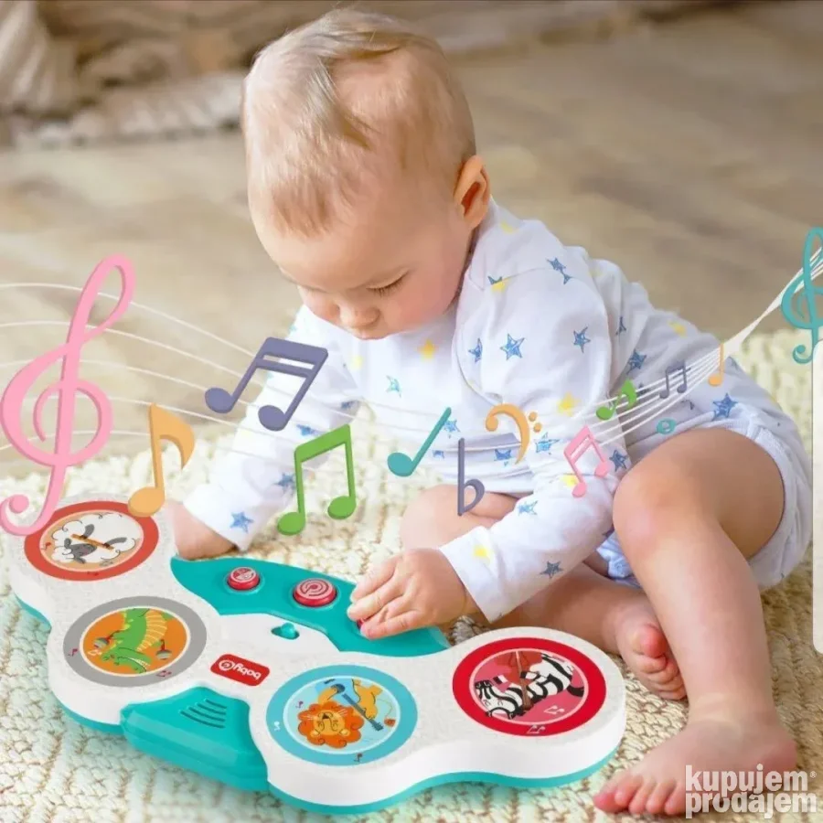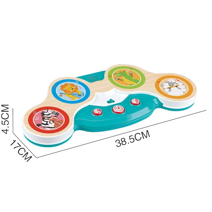 تتميز بأربعة أسطح دائرية مزينة برسومات حيوانات (مثل الأسد، الزرافة، الحمار الوحشي، والفيل) تستجيب للمس الخفيف لتصدر أصواتاً موسيقية.