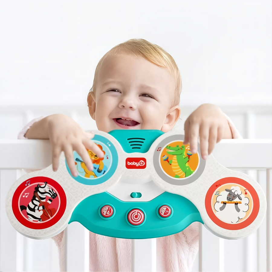 تتضمن أصوات حيوانات، نغمات موسيقية، وإيقاعات طبل مختلفة لتحفيز حواس الطفل.