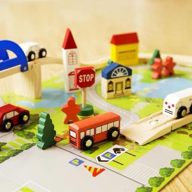 في عالم صغير مليء بالقطارات والسيارات والمباني، تنطلق مغامرة الطفل بين الجسور والطرقات، حيث يكتشف العلاقات بين الأشياء ويتفاعل مع بيئة مصغّرة تحاكي الواقع. هذه اللعبة تجمع بين البناء والخيال، وتفتح الباب أمام لحظات من اللعب الحر والتعلّم العفوي.