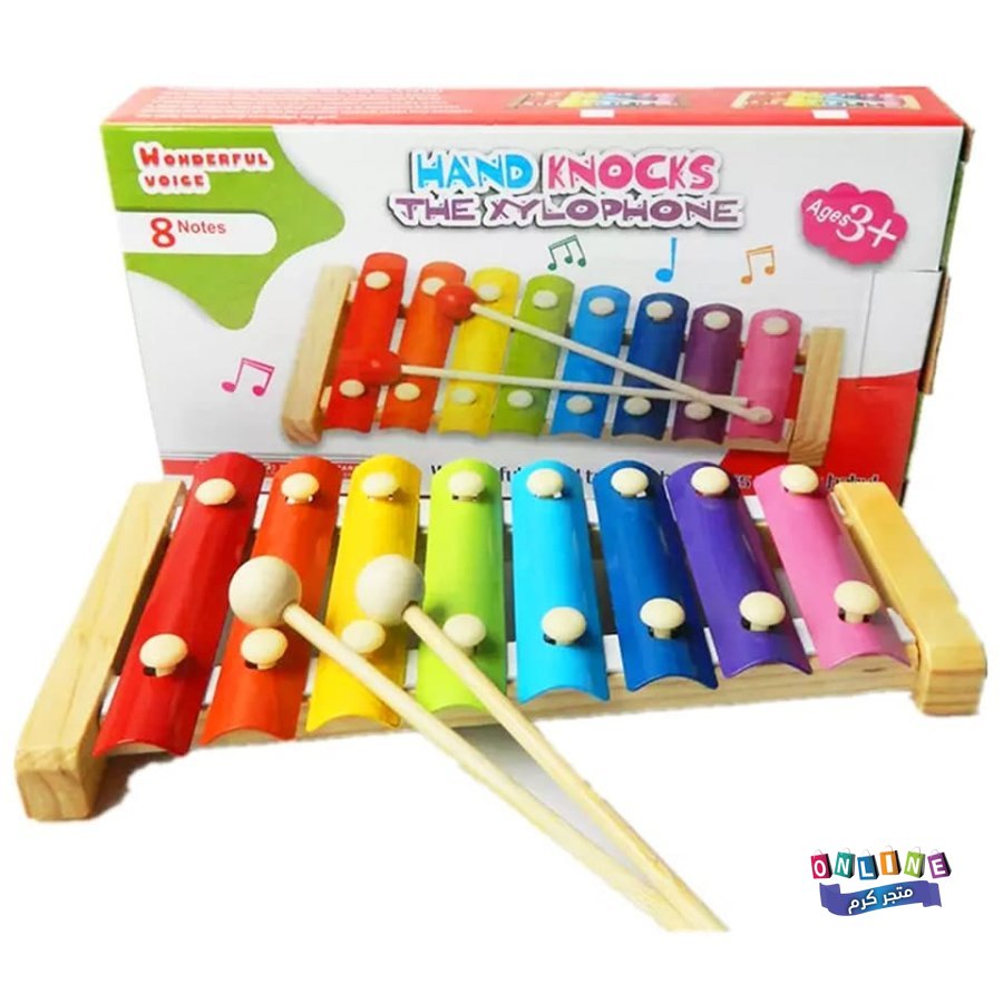 لعبة موسيقية خشبية مصممة للأطفال من عمر 3 سنوات فما فوق، تجمع بين الاكتشاف الصوتي والتفاعل الحسي. تتكون من قاعدة خشبية تحمل ثمانية قضبان معدنية ملونة، كل منها يصدر نغمة مختلفة عند الطرق عليه، مما يتيح للطفل تجربة العزف والتعبير الإيقاعي. تأتي اللعبة مع مطرقتين خشبيتين ذات رؤوس مطاطية حمراء، مصممتين خصيصًا لتكون آمنة وسهلة الاستخدام لليدين الصغيرتين.