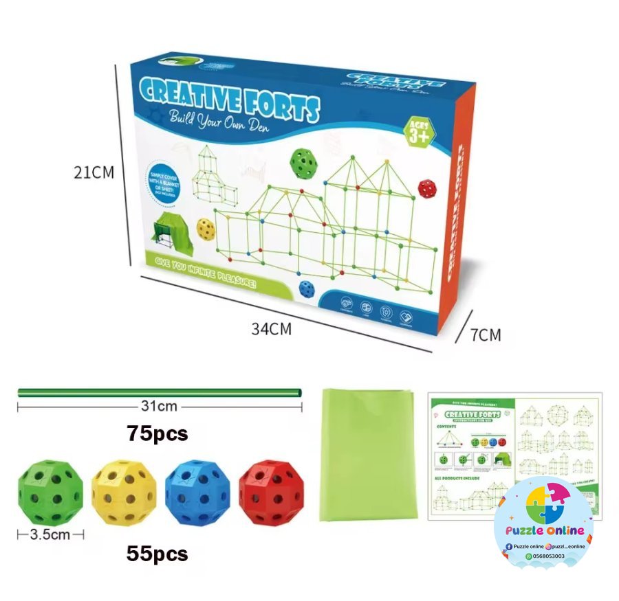اللعبة بتسمح للأطفال يصمموا قلاع وأنفاق بأشكال مختلفة وممتعة باستخدام العيدان والوصلات 🔵🟡