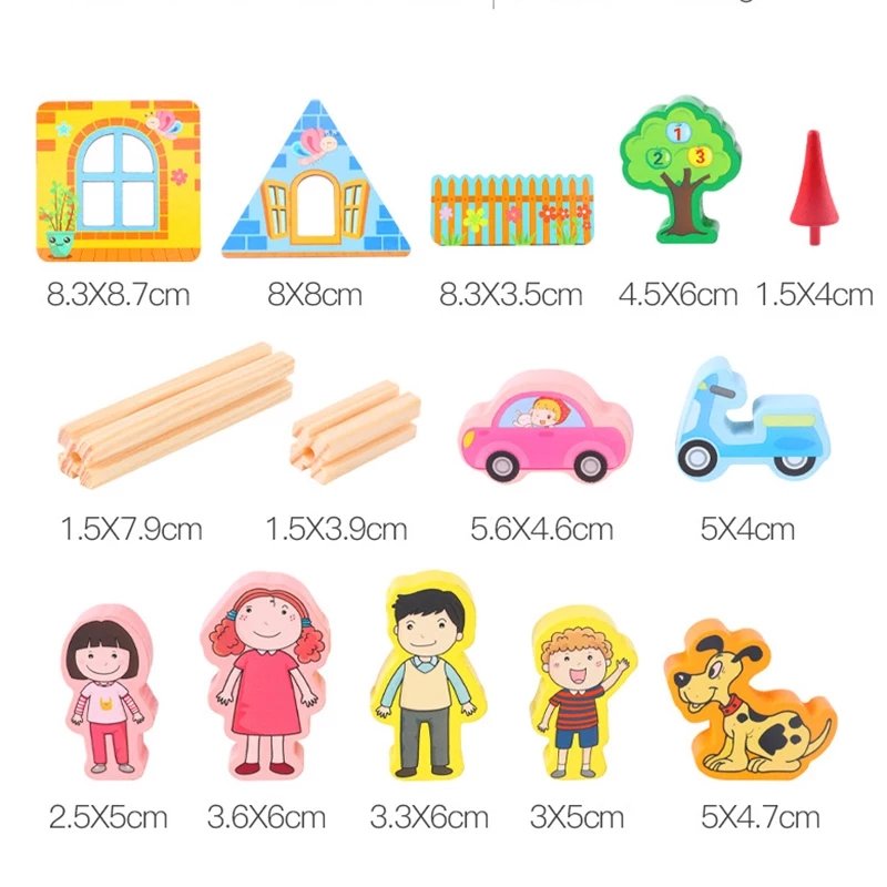 مجموعة تعليمية خشبية تحتوي على قطع هندسية ثلاثية الأبعاد بألوان زاهية، تُستخدم لتركيبها داخل فتحات مطابقة على صندوق خشبي أو على ألواح مسطحة مرفقة. الطفل يتفاعل مع كل قطعة من خلال الإمساك، التوجيه، والتركيب، مما يعزز مهاراته الحركية والبصرية بطريقة ممتعة وآمنة.