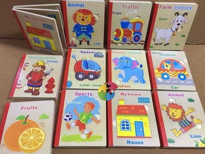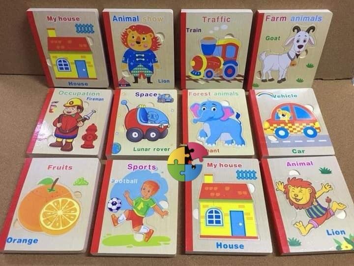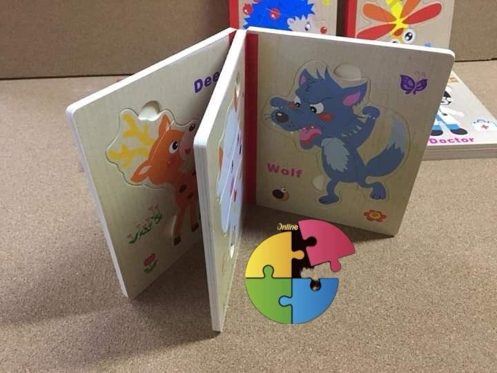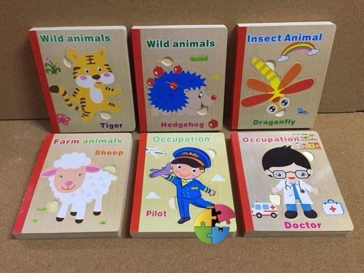 كل صفحة تحتوي على شكل مرسوم بأسلوب مرح، مع قطعة بازل قابلة للإزالة والتركيب، مما يمنح الطفل تجربة حسية ممتعة ويعزز مهاراته الإدراكية.
