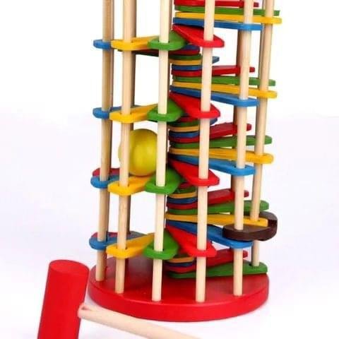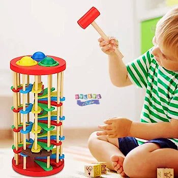 لعبة خشبية تفاعلية تُشجّع الطفل على استكشاف مفهوم السبب والنتيجة من خلال ضرب الكرة بالمطرقة ومشاهدتها تتدحرج عبر المنصات الملونة. تُنمّي التنسيق بين اليد والعين، وتُحفّز الفضول الحركي بطريقة ممتعة وآمنة.