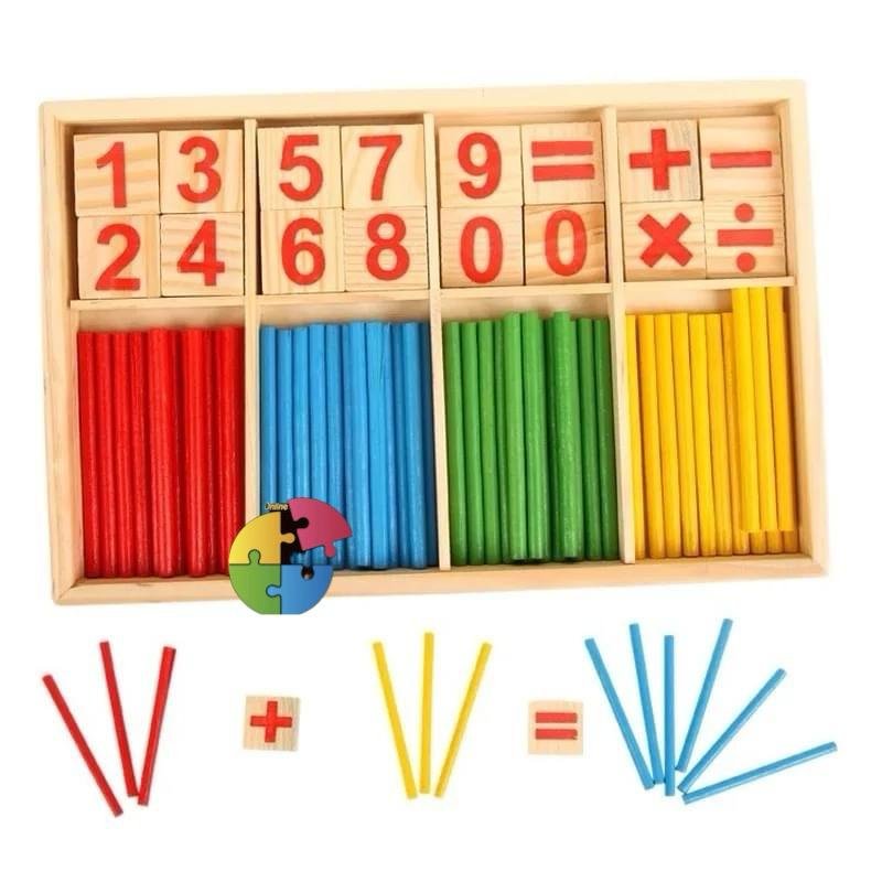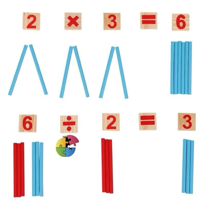 لعبة تعليمية خشبية تُساعد الطفل على تعلّم العمليات الحسابية الأساسية من خلال العصي الملونة والبلاطات الرقمية. يُمكن للطفل تكوين معادلات مثل الجمع والطرح باستخدام الأرقام والرموز، مع دعم بصري من العصي لتوضيح المفهوم بطريقة ملموسة.