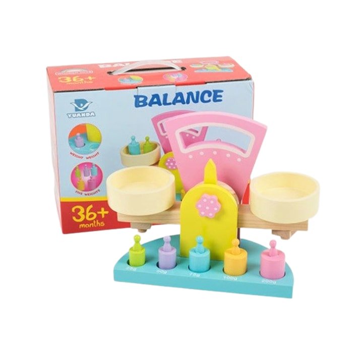 لعبة تعليمية خشبية مناسبة لعمر 3 سنوات فما فوق، تُساعد الطفل على استكشاف مفهوم التوازن والوزن باستخدام شخصيات ملونة تُوضع على كفتي الميزان. تُحفّز التفكير المنطقي، وتُنمّي التنسيق بين اليد والعين، وتُقدّم تجربة حسّية تُقرّب الطفل من المفاهيم الرياضية بطريقة ملموسة.