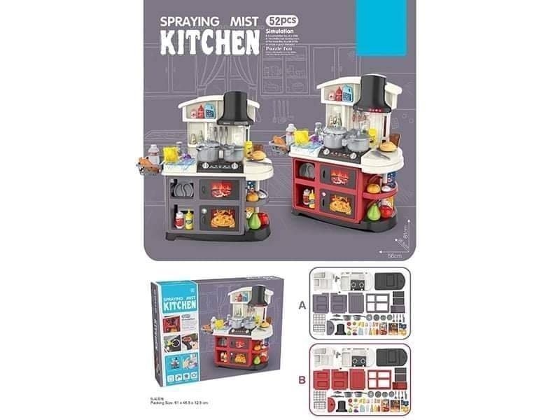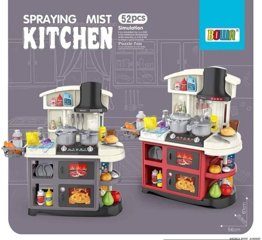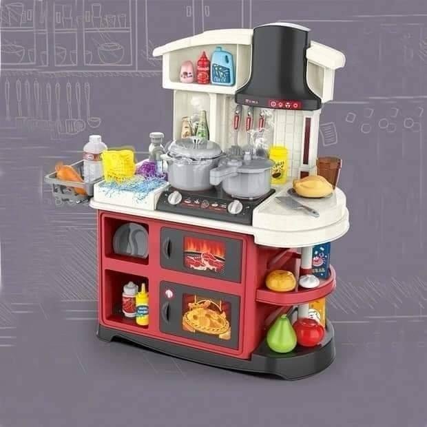 امنحي طفلك تجربة مطبخ متكاملة مع هذه المجموعة الغنية بالتفاصيل! تحتوي على أدوات وأواني وأطعمة بلاستيكية، وتتميز بتأثير البخار الذي يخرج من الموقد ليحاكي الطهي الحقيقي بطريقة آمنة ومبهجة.