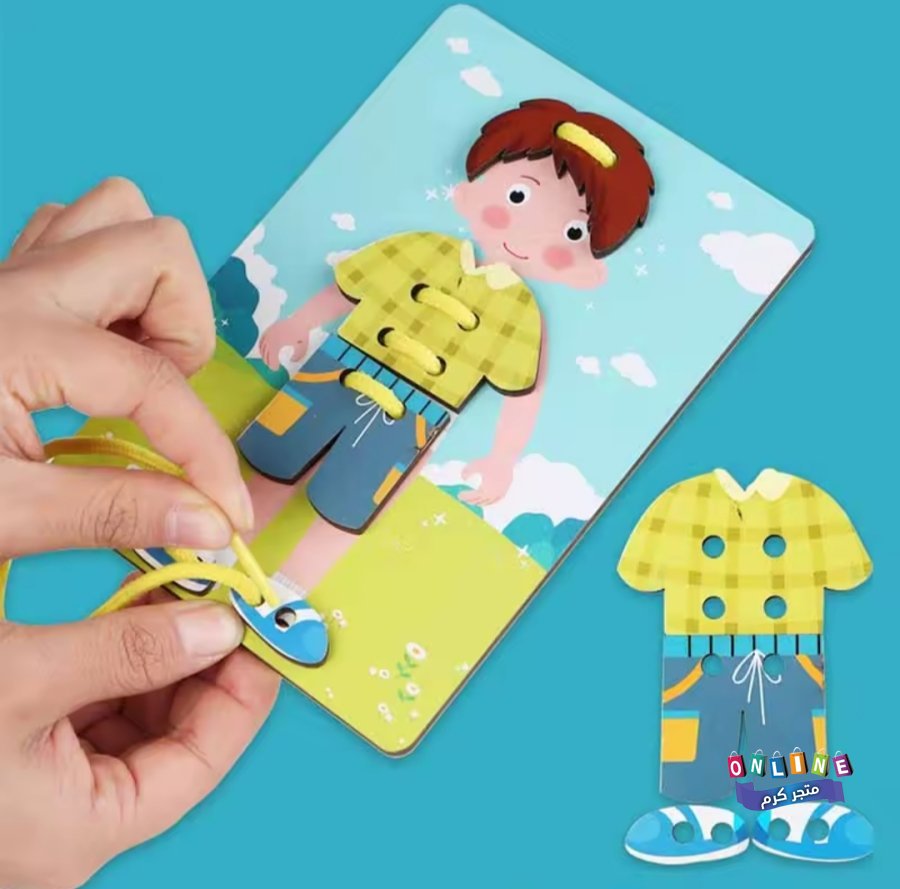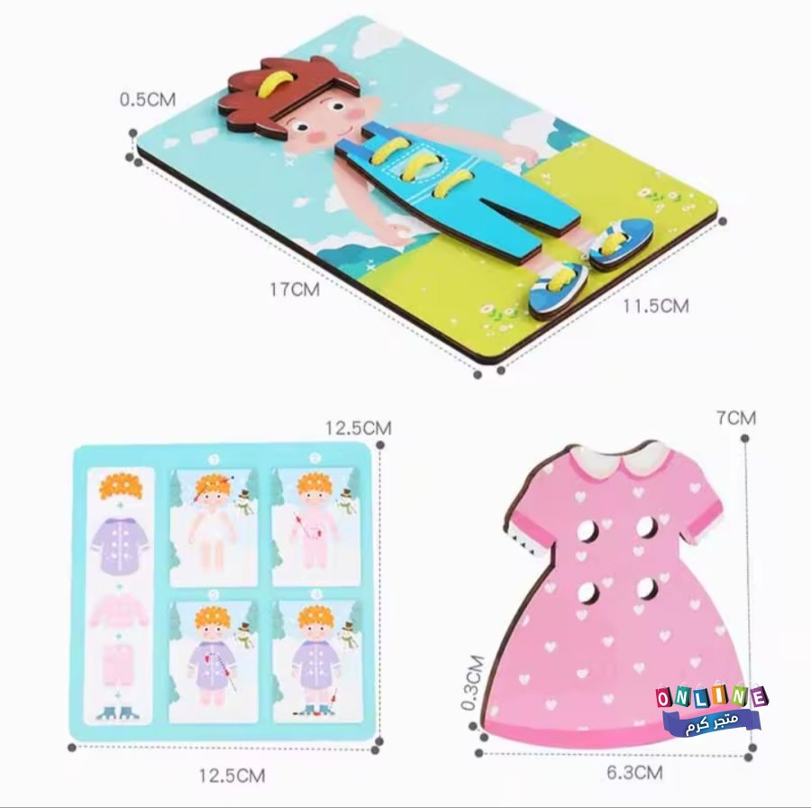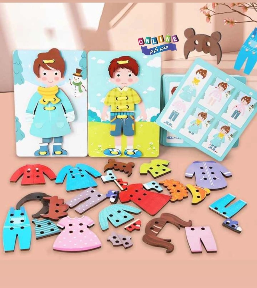 - لوحين خشبيين بشخصيات أطفال يمكن تغيير ملابسهم.