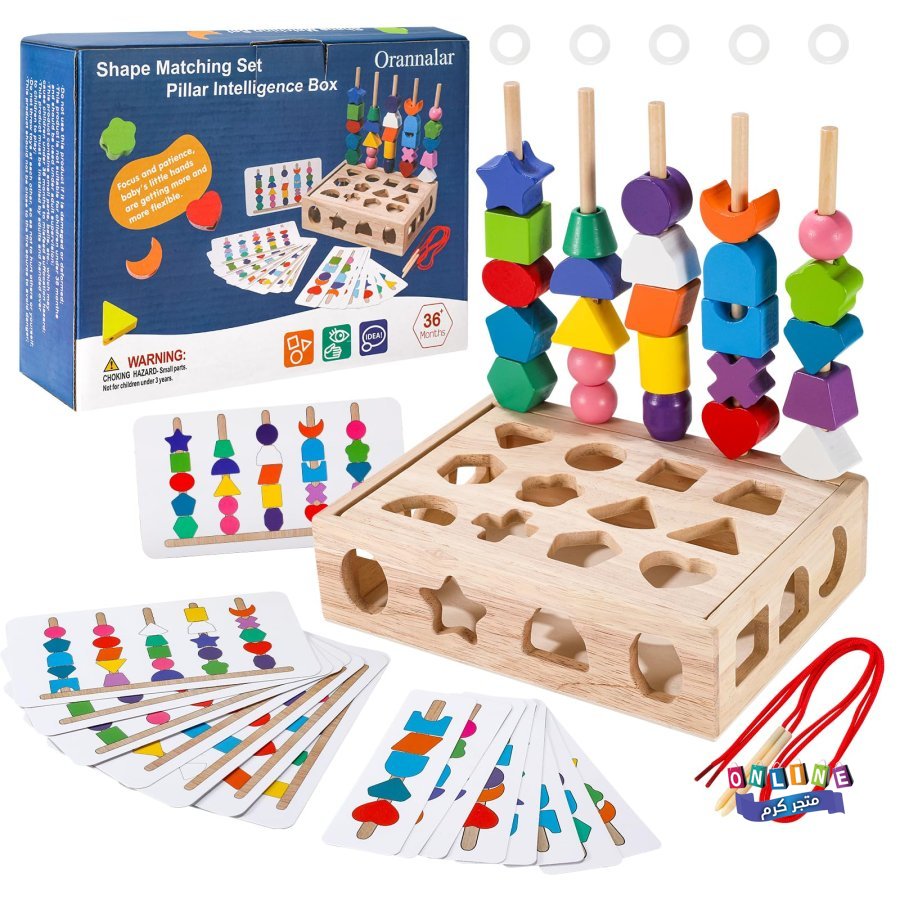 🔸 صندوق تطابق الأشكال مع أعمدة خشبية وأشكال ملونة