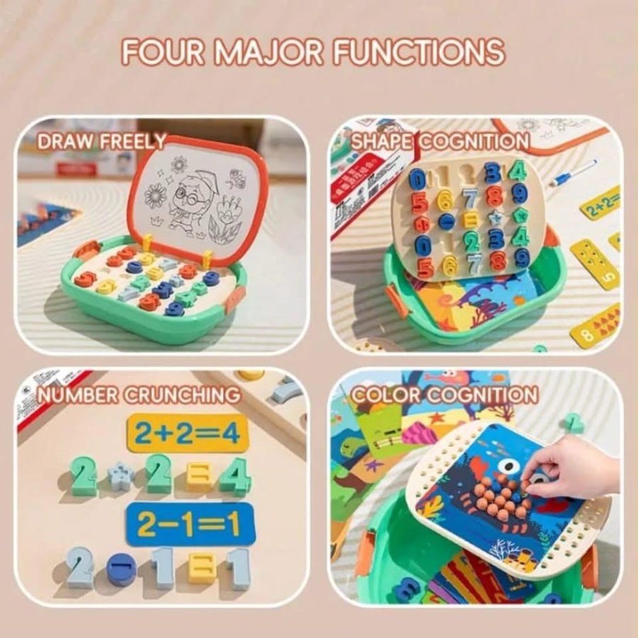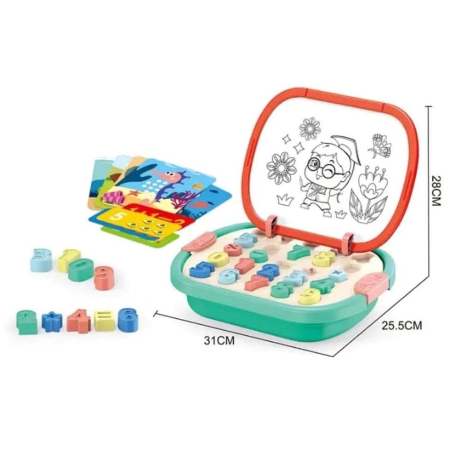 هذه اللعبة الذكية تأتي على شكل حقيبة محمولة تفتح لتكشف عن عالم من الأنشطة التفاعلية التي تجمع بين اللعب، الفن، والتعلم المبكر.