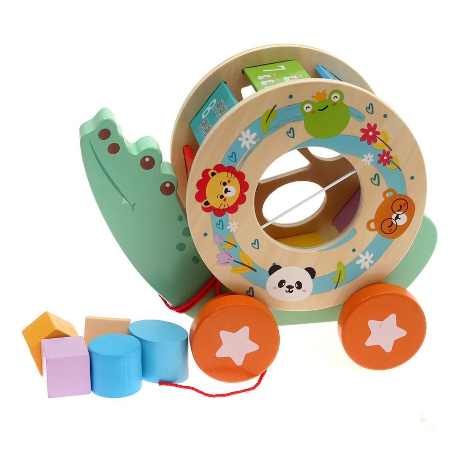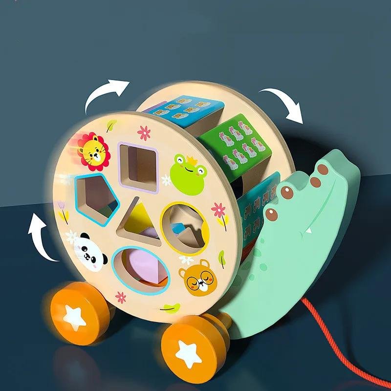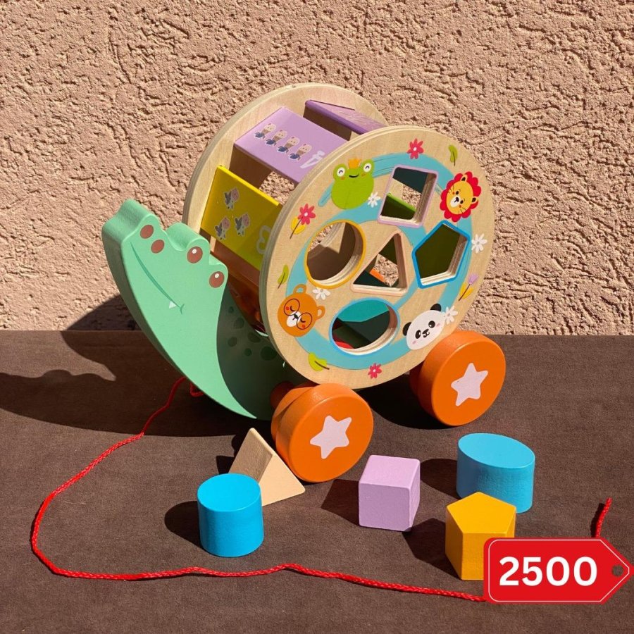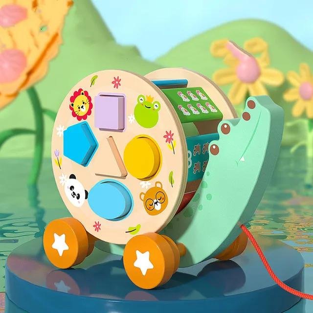 لعبة على شكل سيارة خشبية بتصميم ضفدع لطيف تساعد الطفل يتعلم الأشكال والألوان ويطوّر مهارة التركيز والتنسيق بطريقة آمنة ومسلية