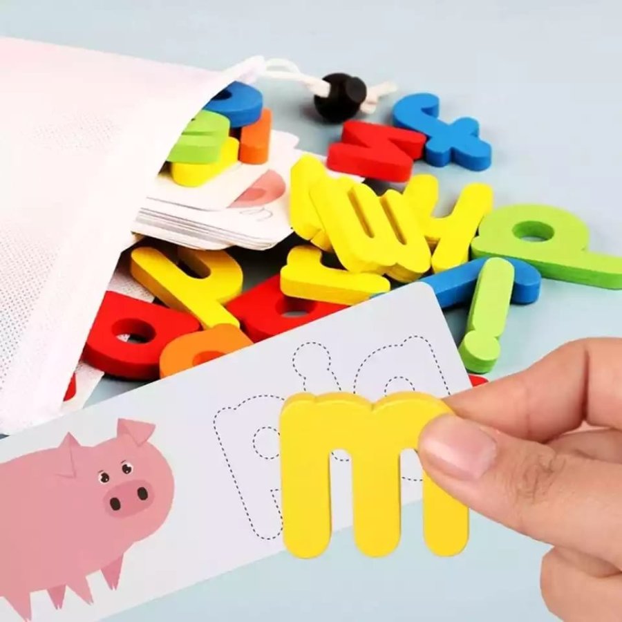 لعبة تعليمية للأطفال تحتوي على 28 بطاقة مزدوجة و52 حرفًا ملونًا لتطوير الذكاء وتعزيز التعلم من خلال اللعب والرسوم التوضيحية الممتعة.