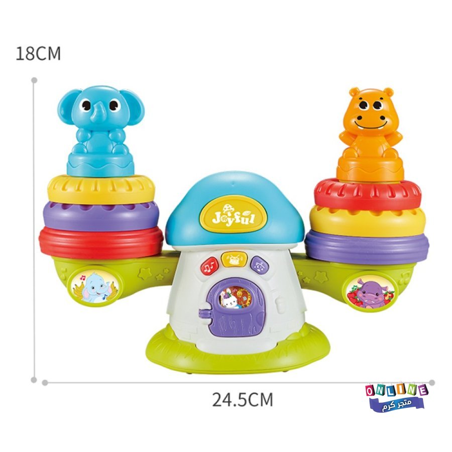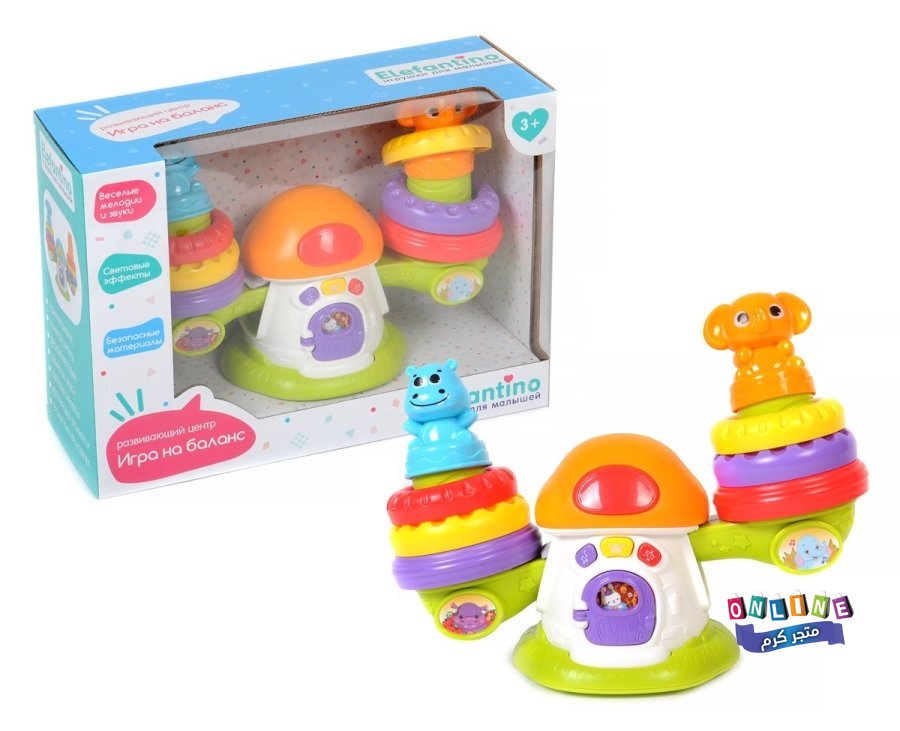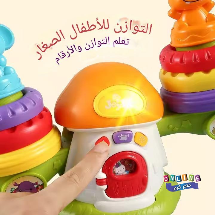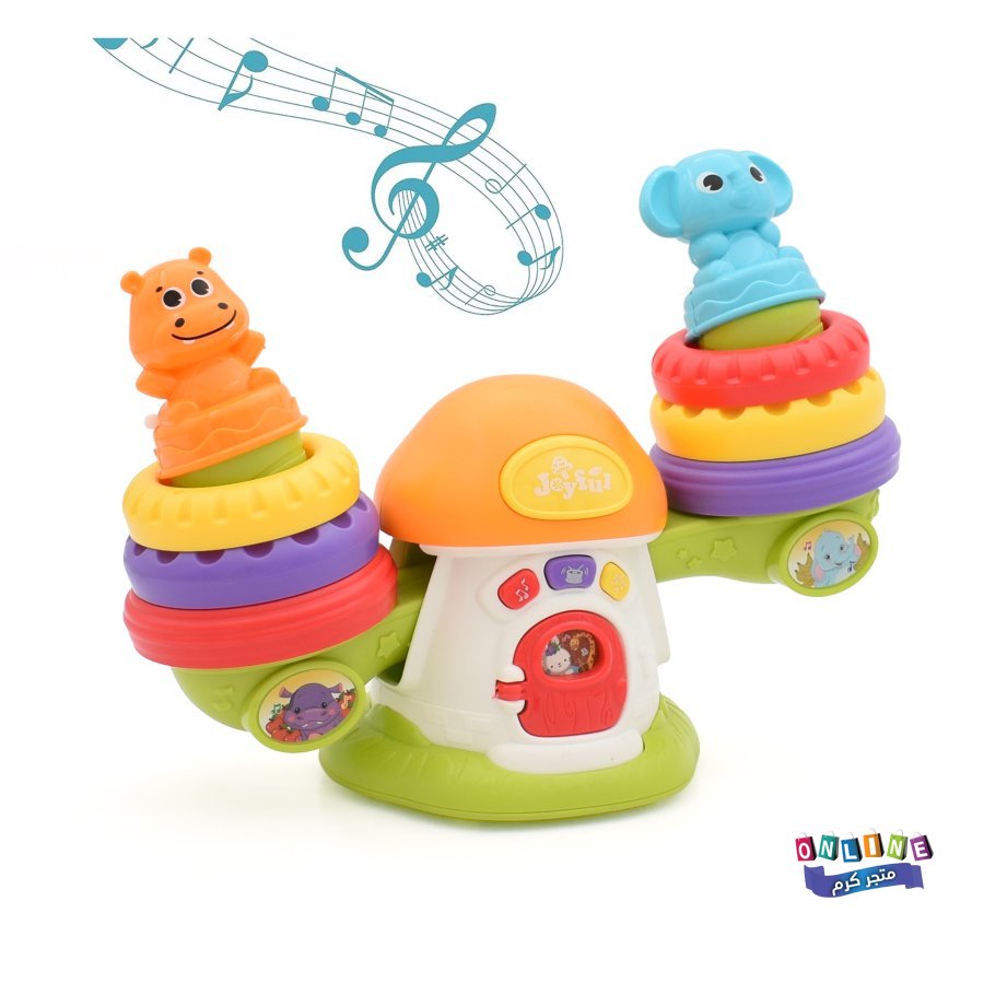 دع طفلك يقوم بموازنة الميزان الموسيقي ليكون علي استقامة، وذلك بتركيب القطع الملونة علي طرفي الميزان.يحتوي علي موسيقي واصوات تفاعلية مميزة