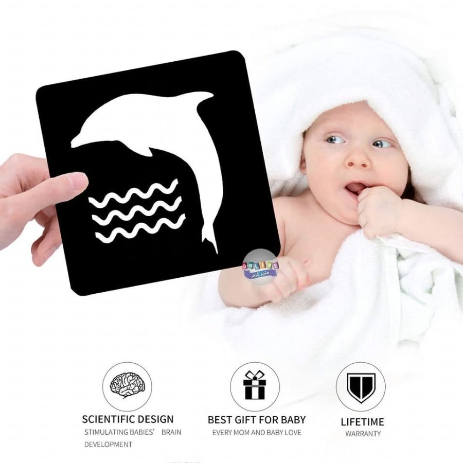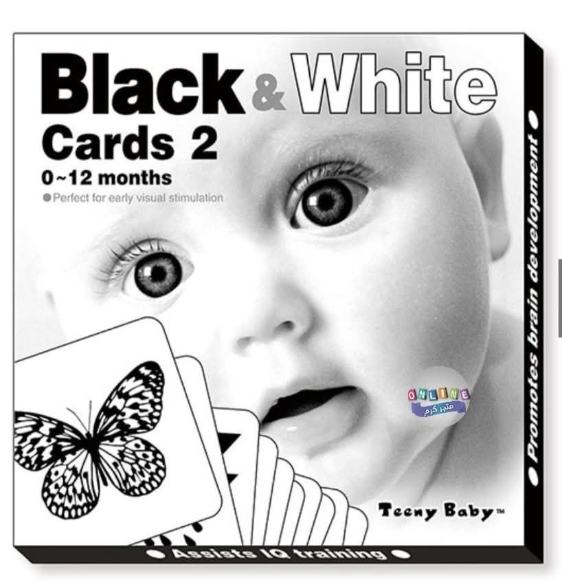 ♦️وهي عبارة عن كروت أبيض وأسود للرضع برسومات عالية الدقة لزيادة قدرة الطفل على الانتباه والتركيز بتتبع اللونين الأبيض والأسود