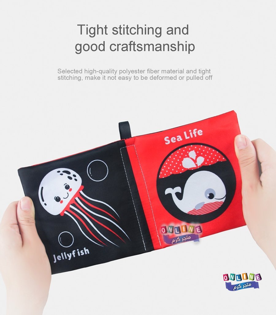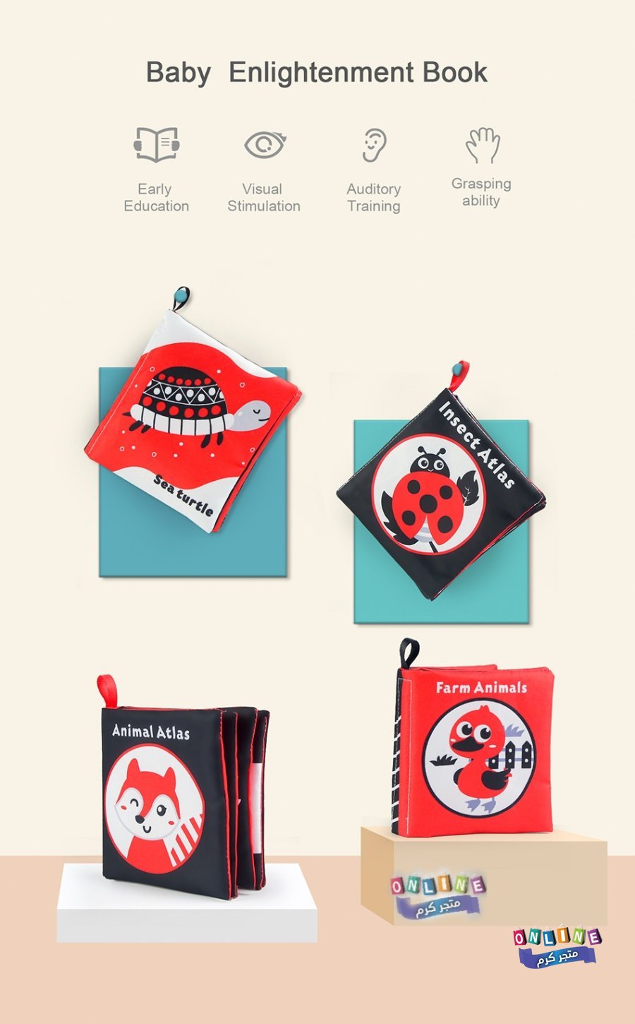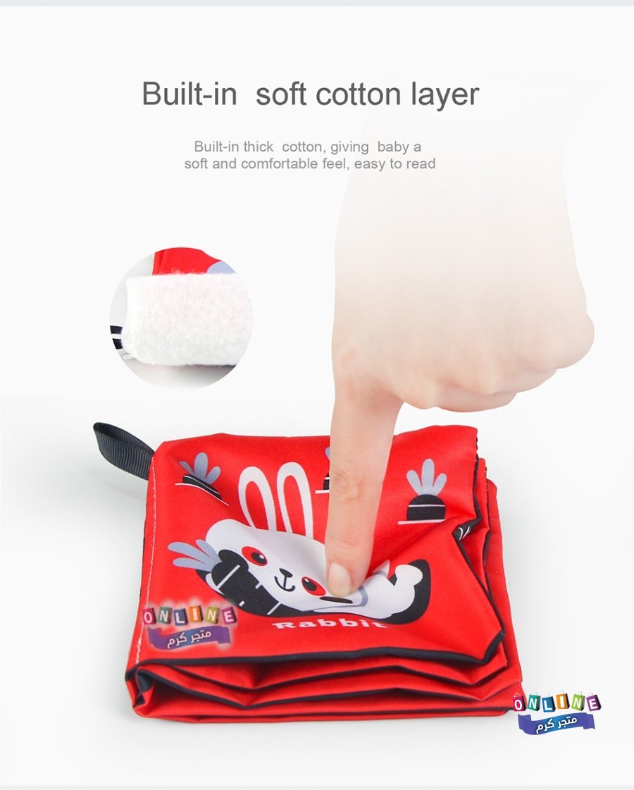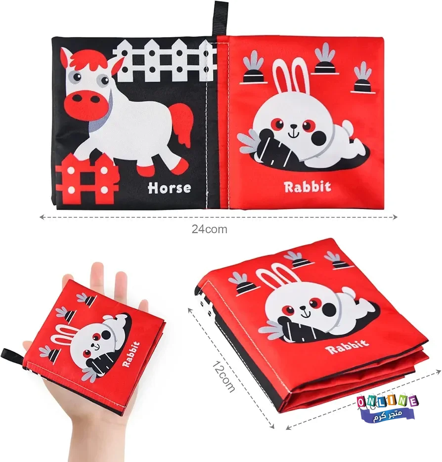 كتاب قماش ناعم وآمن، مصمّم خصيصًا للأطفال الصغار ليتعرفوا على الحيوانات والأشكال والألوان بطريقة ممتعة وآمنة 💕
