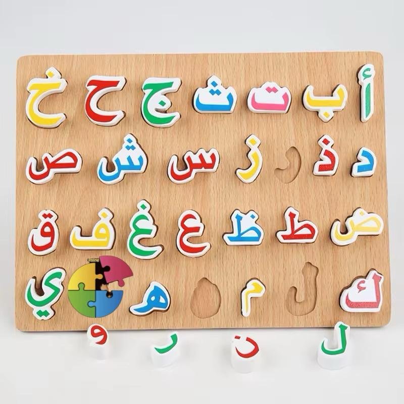 كل حرف مصمم بشكل منفصل ليتناسب مع مكانه على اللوحة، مما يساعد الطفل على التعرف على شكل الحرف وموقعه، ويشجعه على التفاعل الحسي والبصري أثناء التعلم.