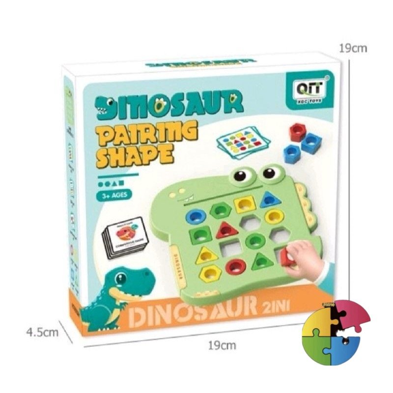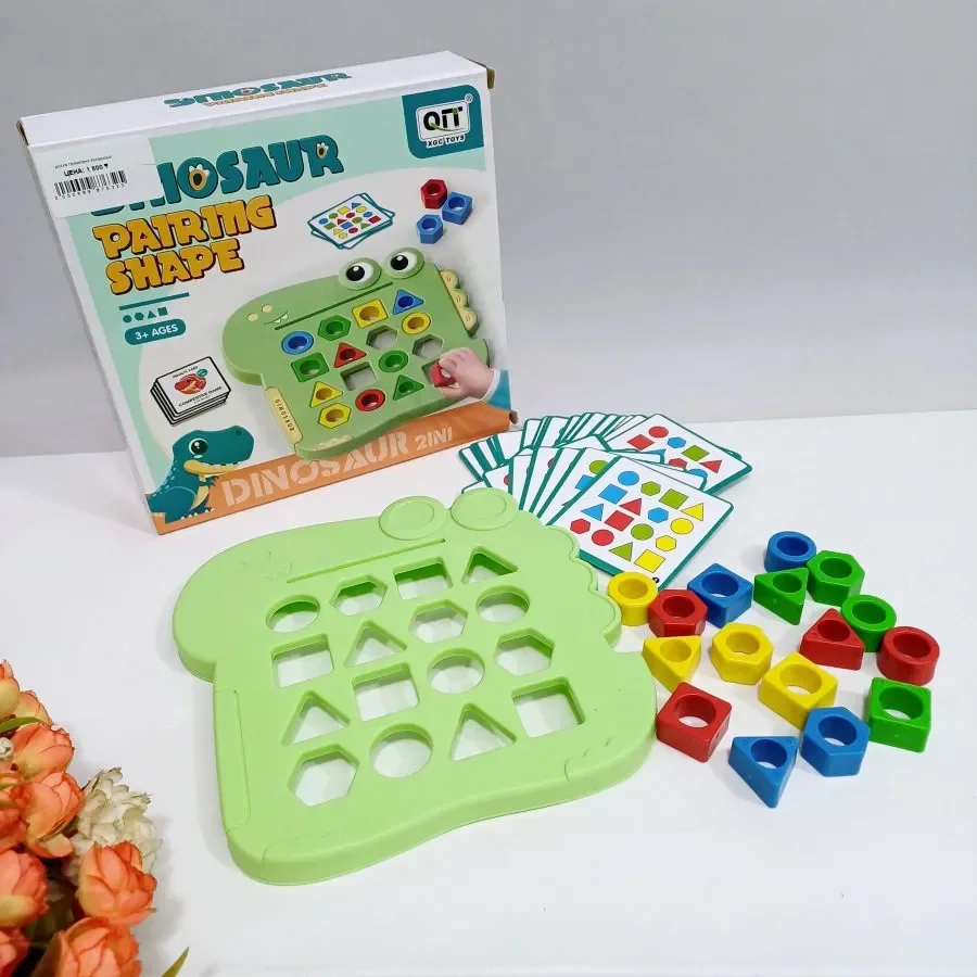بتحتوي على قاعدة على شكل ديناصور لطيف، وأشكال هندسية بألوان زاهية وبطاقات تحدي مختلفة لتطوير التركيز والمنطق عند الأطفال 🔵🟡🔺🟥