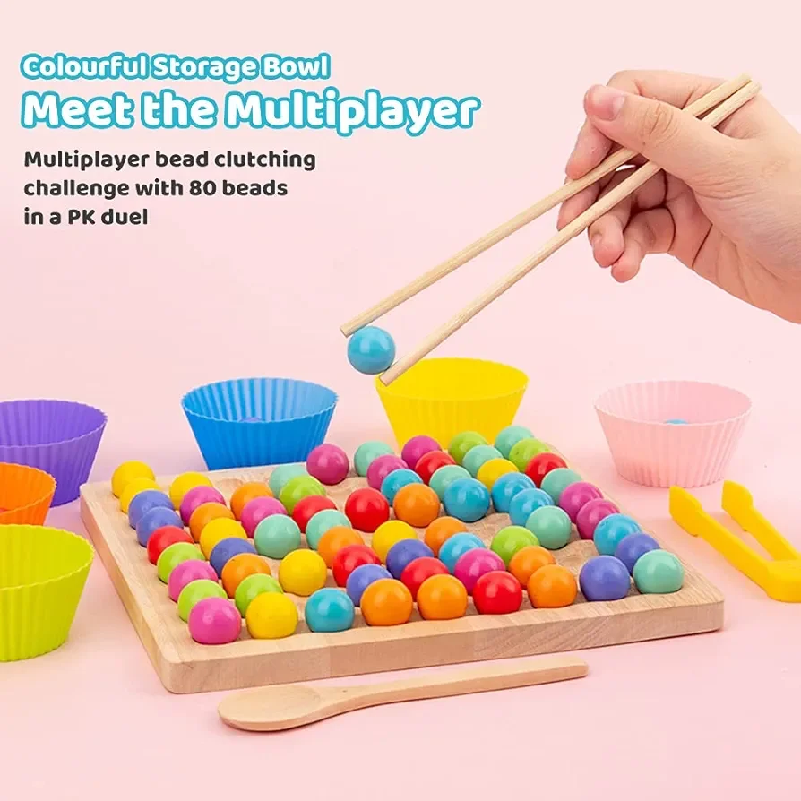 لا تقوم لعبة الكرات الملونة الخشبي بتدريب وتدريب حركات اليد الدقيقة فحسب، بل تلبي أيضًا متعة اللعب التفاعلي متعدد الأشخاص ومتعة اللعبة.
