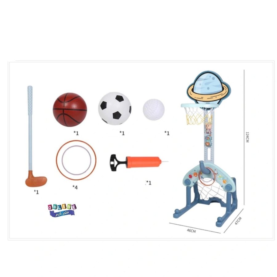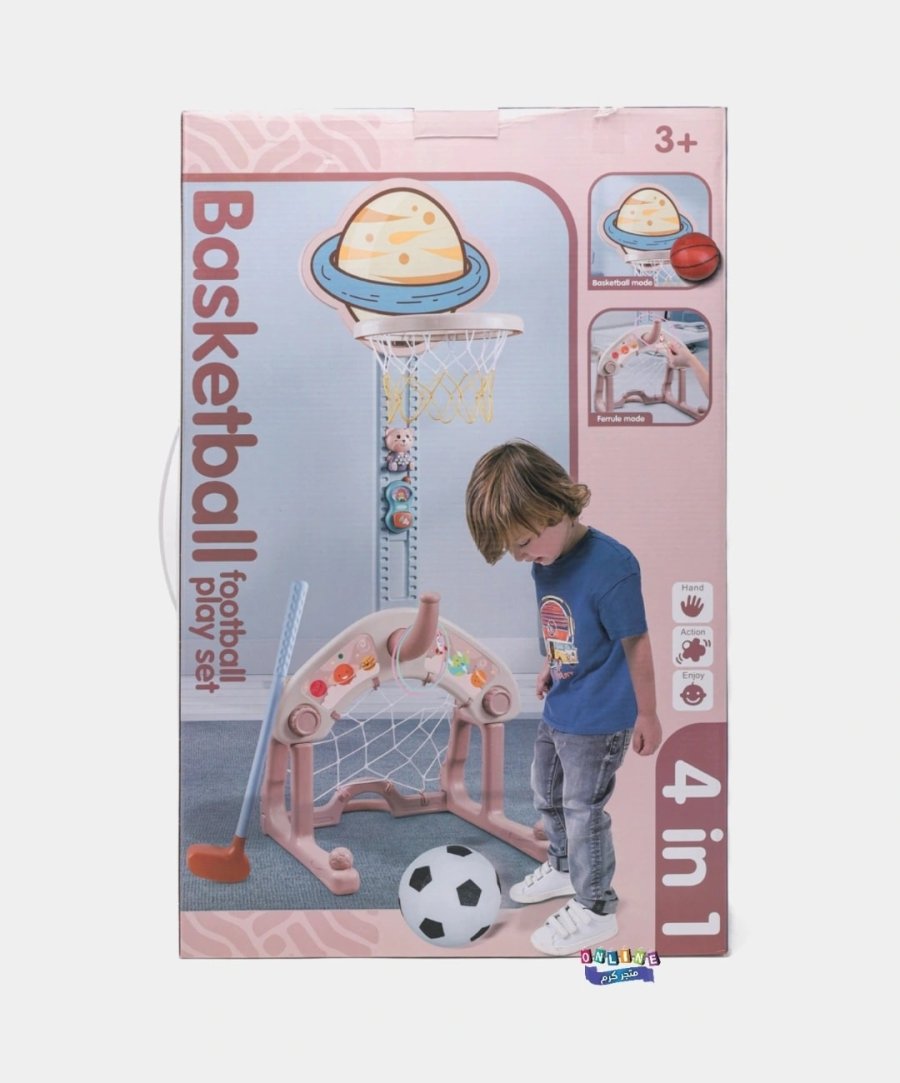 ✨🏀 لعبة 4 في 1 مذهلة تجمع بين كرة السلة، كرة القدم، رمي الحلقات، ولعبة المطرقة… متعة لا تنتهي للأطفال!