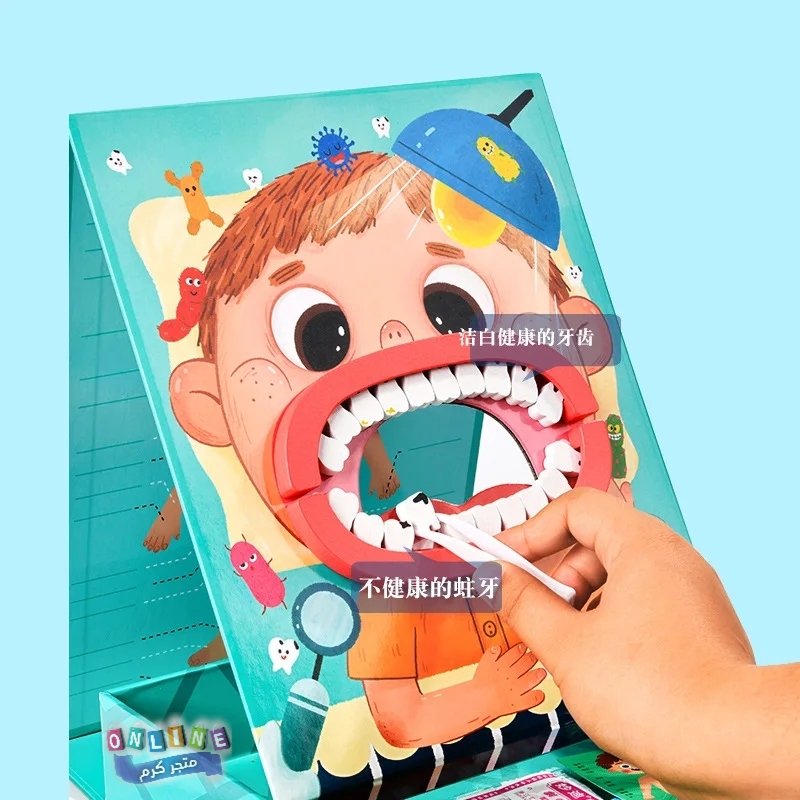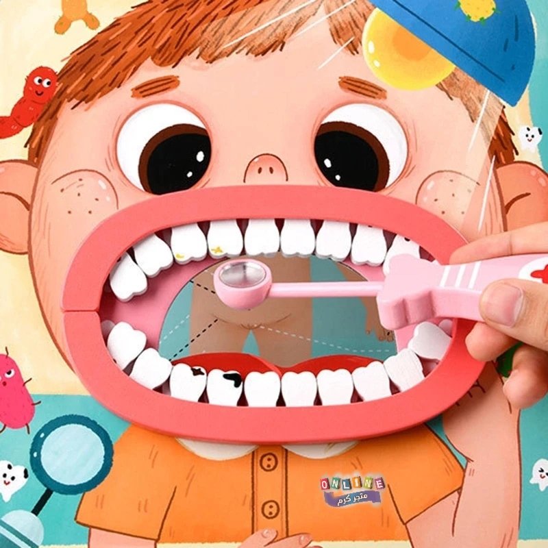 مجموعة ألعاب طبيب الأسنان الخشبية المعروضة في الصورة هي لعبة تعليمية مخصصة للأطفال. تهدف هذه اللعبة إلى تعريف الأطفال بمهنة طبيب الأسنان وتشجيعهم على العناية بأسنانهم بطريقة ممتعة وتفاعلية، مما يساعد في تقليل الخوف أو القلق لديهم من زيارات طبيب الأسنان الحقيقي.