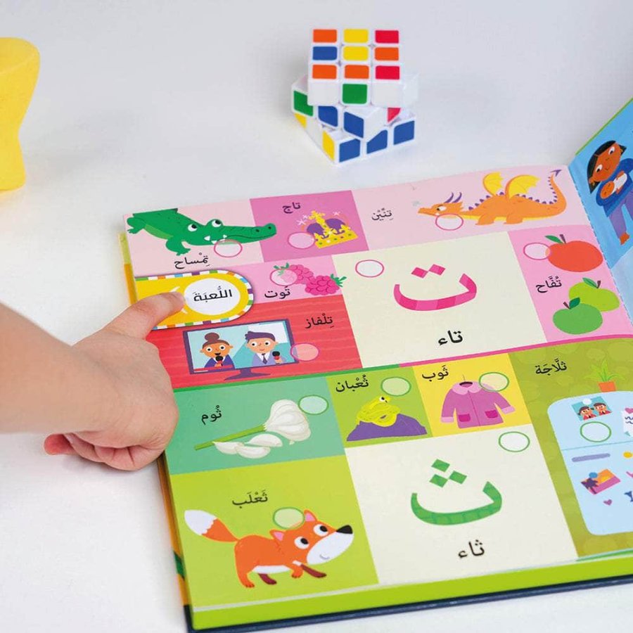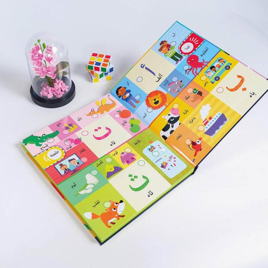 إنَّ هذا الكِتابَ التَّفاعليَّ يضمنُ تَجربةَ تعلُّمٍ سهلةٍ ومُمتعةٍ للأطفالِ! فهوَ يُقدِّمُ معلوماتٍ شاملةً عنِ الحروفِ والكلماتِ الَّتي تبدأُ بِها. سيَستمتعُ الصِّغارُ بتعلُّمِ الأبجديَّةِ، وبتعزيزِ مُفرداتِهم، وباختبارِ معرفتِهِم.