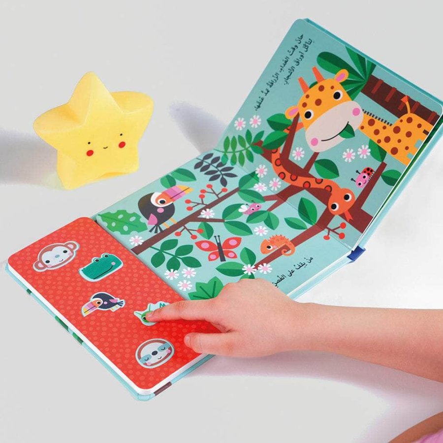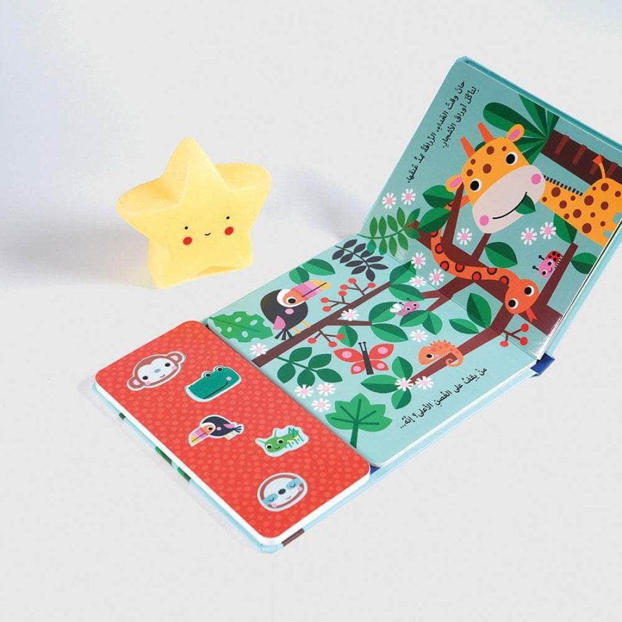 استمتعوا برحلةٍ ممتعةٍ مع هذا الكتاب الصّوتيّ السّاحر، حيث يمكن للأطفال استكشاف 5 أزرارٍ تصدر أصواتاً شيّقةً ستضفي الحياة على الكتاب المليء بالرّسومات الأخّاذة.