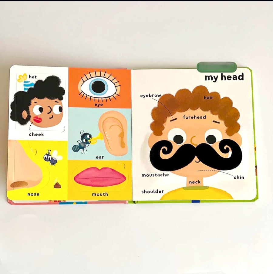 كتاب المس واشعر مع صفحات قابلة للطي: أول 100 كلمة" - الذراع، السرة، والذقن: عززي مفردات طفلكِ بسهولة بفضل الرسوم التوضيحية النابضة بالحياة، والصفحات القابلة للطي المرحة، والعناصر الكبيرة التي تُتيح اللمس والشعور. أكثر من 100 كلمة أساسية متعلقة بالجسم والصحة لتعلّمها واكتشافها!