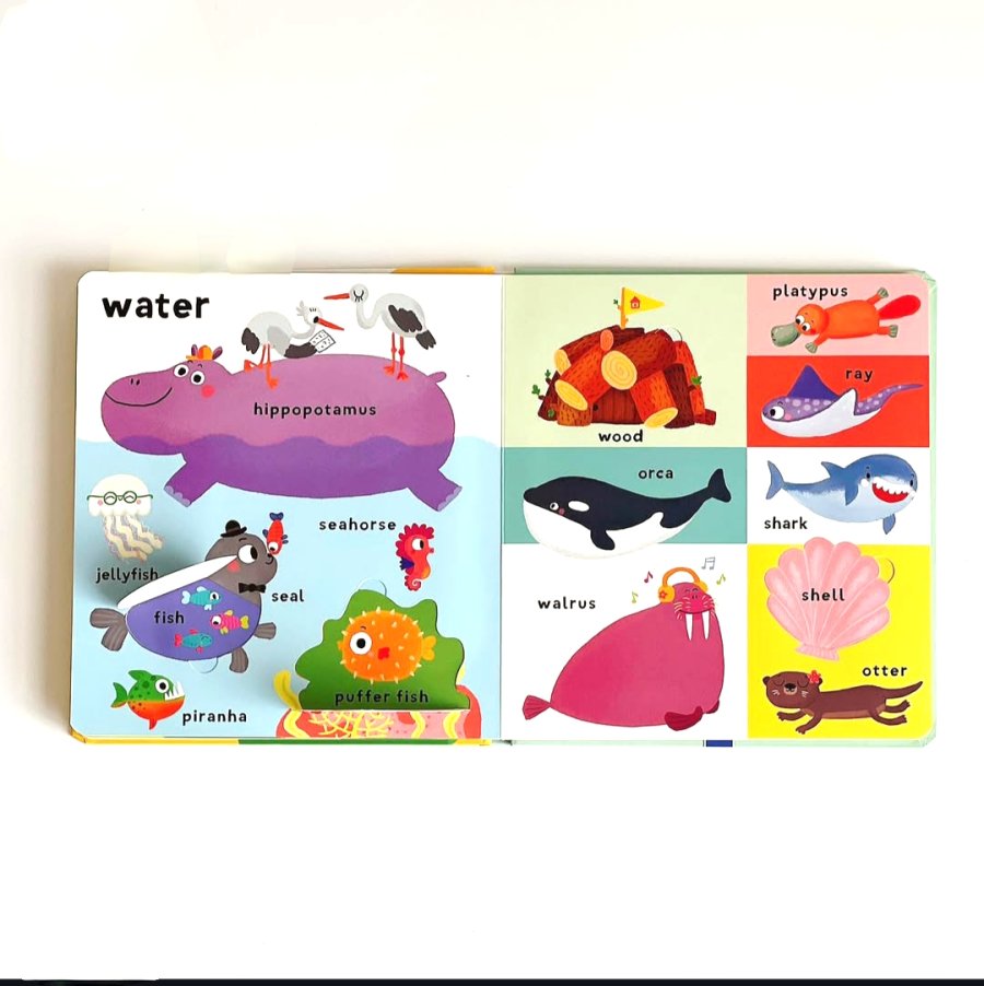 كتابٌ ممتعٌ يُعرّف الطفل الصغير على مجموعةٍ واسعةٍ من الكلمات المتعلقة بالحيوانات البرية. سيُنمّي الأطفال الصغار مفرداتهم بسهولةٍ بفضل الرسوم التوضيحية النابضة بالحياة، والصفحات القابلة للطيّ المرحة، والعناصر الكبيرة التي تُتيح لهم لمسها. أكثر من 100 كلمةٍ أساسيةٍ ليتعلموها ويكتشفوها!