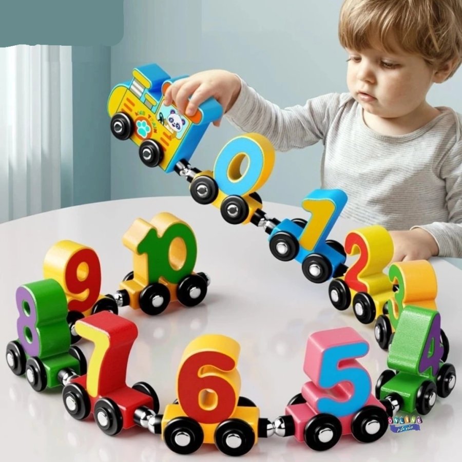 🧲🚗 قاطرة + 10 عربات مرقّمة من 0️⃣ إلى 🔟 تُربط بسهولة بالمغناطيس