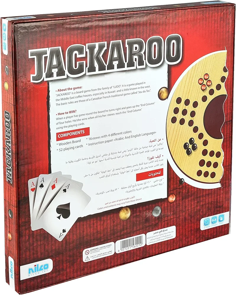 لعبة جاكارو هي لعبة لوحية تعتمد على الحظ والذكاء، ويلعبها لاعبان ضد بعضهما البعض، أو أربعة لاعبين، وفي بعض الإصدارات ستة لاعبين، ويلعبون في فرق بحيث يشكل اللاعبون الذين يجلسون مقابل بعضهم البعض فريقًا، ويتم استخدام مجموعة واحدة من أوراق اللعب (52 بطاقة بدون بطاقة الجوكر)،[١] و16 حجرًا بحيث توزع 4 أحجارٍ لكل لاعب، وجميعها من لون واحد، وتعتمد طريقة اللعب على حركة الكرات حول اللوح والفريق الفائز هو أول من ينقل كل الكرات الزجاجية أو الأحجار من منطقة المنزل إلى خط النهاية عن طريق المسار بعد دورة كاملة