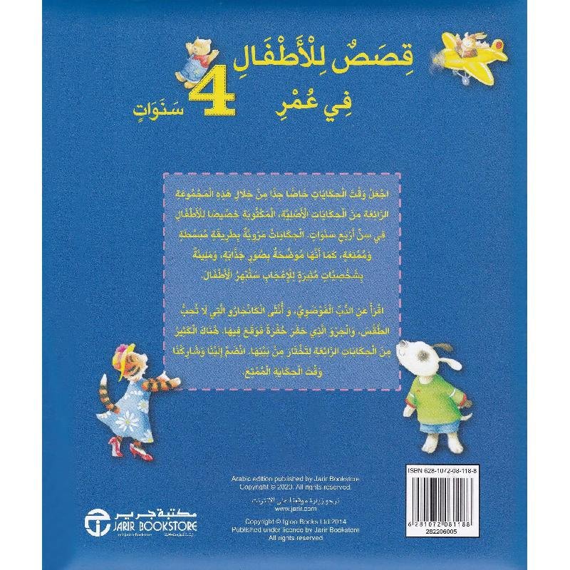 كتاب قصصي تربوي مصمّم خصيصًا للأطفال في عمر الأربع سنوات، يقدّم مجموعة من القصص القصيرة والمسلية التي تساعد الطفل على فهم العالم من حوله، وتغرس فيه القيم الإيجابية بأسلوب قصصي ممتع ومحبّب.
