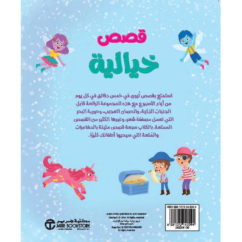 كتاب قصصي تربوي يضم 7 قصص خيالية قصيرة، واحدة لكل يوم من أيام الأسبوع، مصمّمة لتُقرأ في 5 دقائق فقط، مما يجعله مثاليًا لروتين القراءة اليومي قبل النوم أو في أوقات الاستراحة.