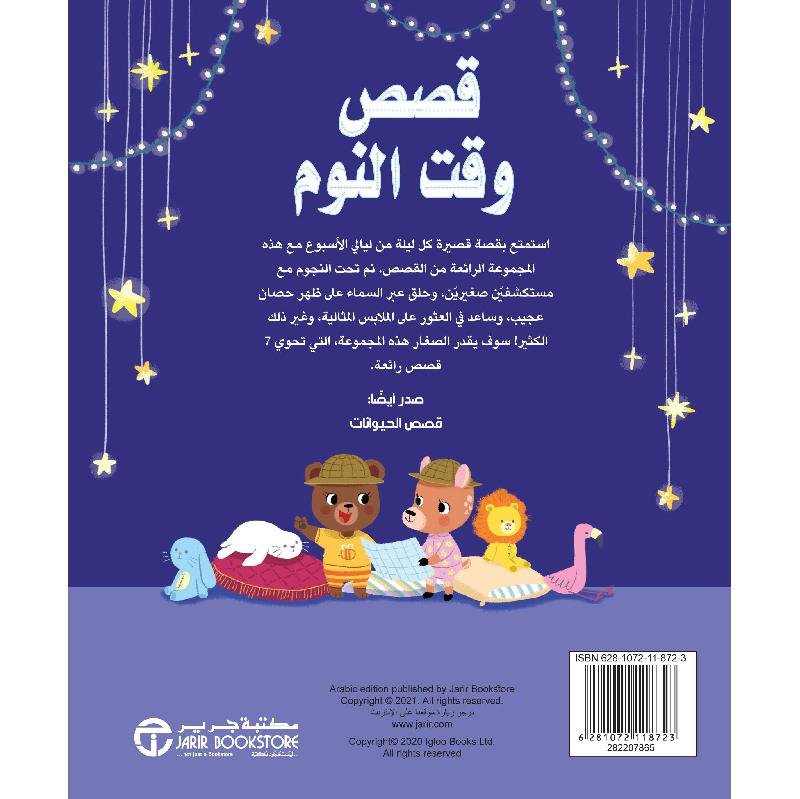 كتاب قصصي تربوي يضم 7 حكايات قصيرة، واحدة لكل يوم من أيام الأسبوع، مصمّمة لتُقرأ في 5 دقائق فقط، مما يجعله مثاليًا لروتين النوم اليومي، حيث يلتقي الهدوء بالخيال، وتُزرع القيم في قلب الطفل بلطف وحنان.
