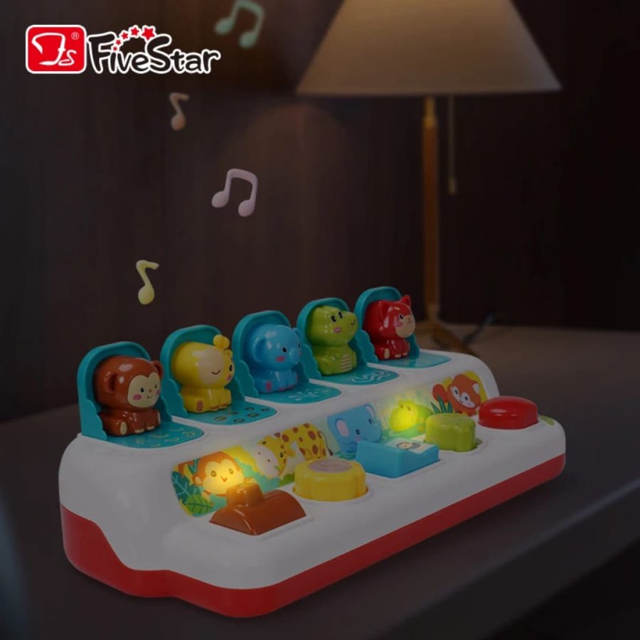 لعبة تفاعلية مصممة خصيصًا للأطفال الصغار، تجمع بين المرح والتعلم من خلال خمسة حيوانات ملونة: القرد، الأسد، الفيل، التمساح، والثعلب. كل حيوان يختبئ داخل صندوق صغير ويظهر عند تفعيل زر أو رافعة أمامه، مما يثير فضول الطفل ويحفّزه على الاستكشاف.