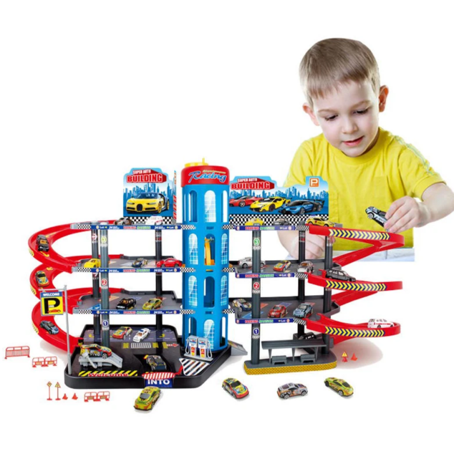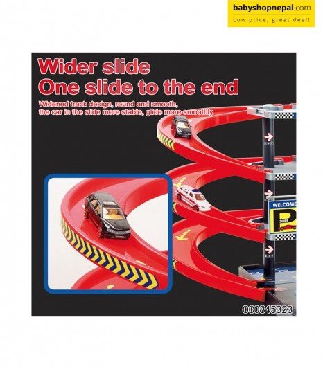 مجموعة لعب تفاعلية تحاكي موقف سيارات متعدد الطوابق، مكوّنة من ستة طوابق متصلة بمنحدر حلزوني أحمر، مع برج جانبي أزرق . تحتوي المجموعة على سيارات صغيرة يمكن للأطفال قيادتها عبر الطوابق، والانطلاق في سباقات خيالية.