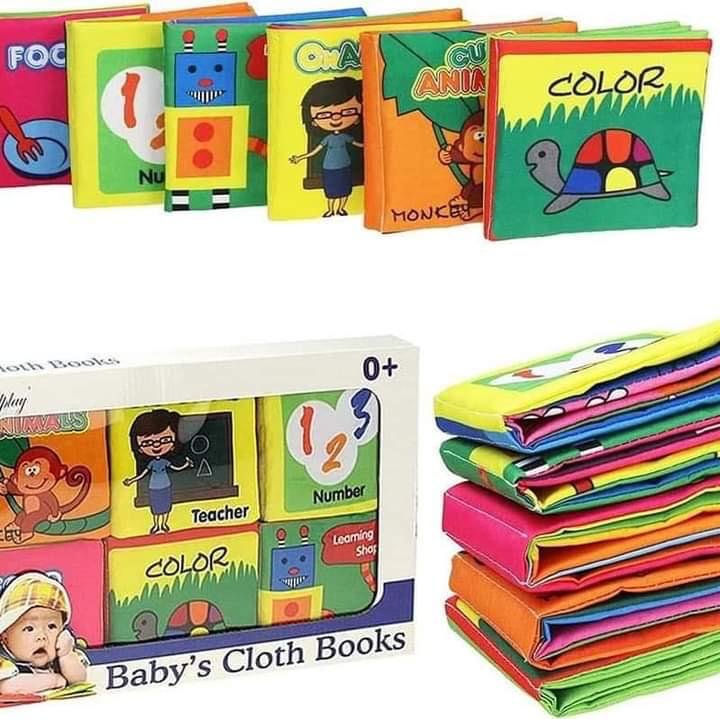 تحتوي المجموعة على 6 كتب قماشية ملونة بتصاميم ممتعة تُعرّف الطفل على الأرقام، الألوان، الحيوانات، والمزيد بطريقة آمنة ومسلية ❤️