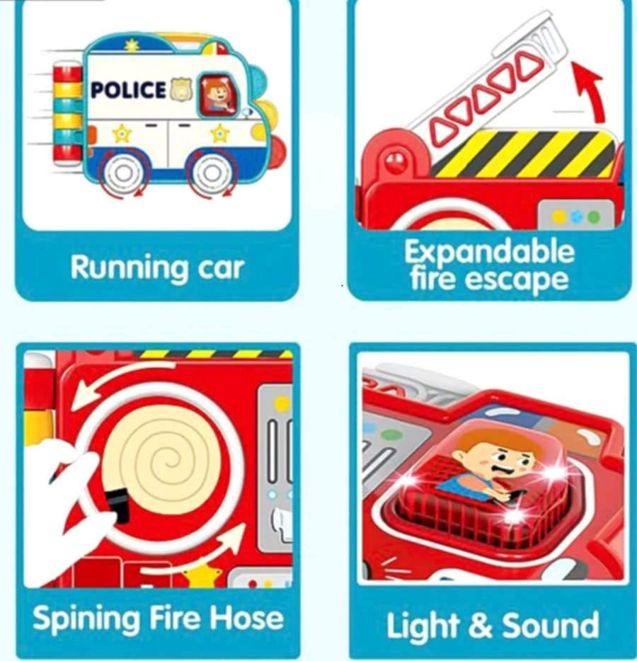 🚓🚒 يتعرّف الطفل على سيارات الشرطة وصفارات الإنذار، حافلات المدارس، وأنظمة الإطفاء