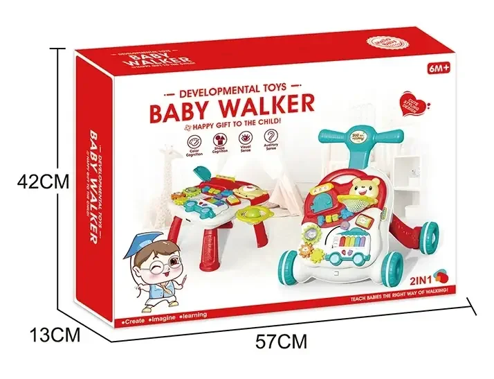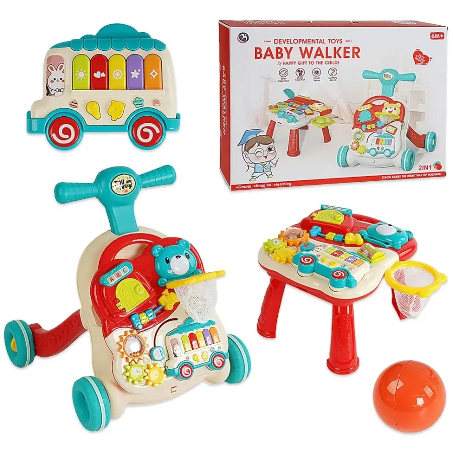 مميزات مشاية الأطفال 2 في 1: جهاز للمشي وطاولة ألعاب - وسيلتان ترفيهيتان مفضلتان في جهاز واحد.