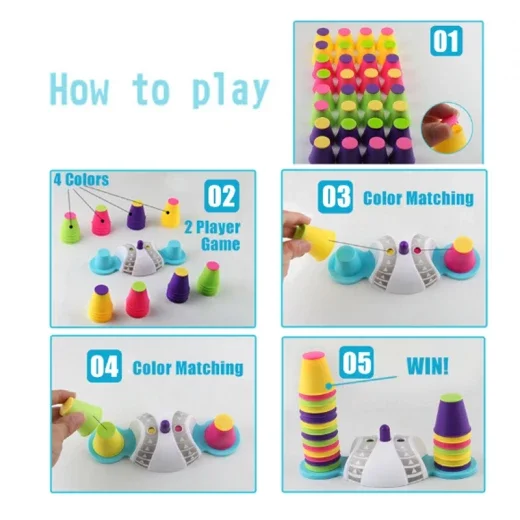 طريقة اللعب: يجب على اللاعبين ترتيب الأكواب الملونة بناءً على نمط الألوان المحدد في البطاقات أو على المنصة في أسرع وقت ممكن.