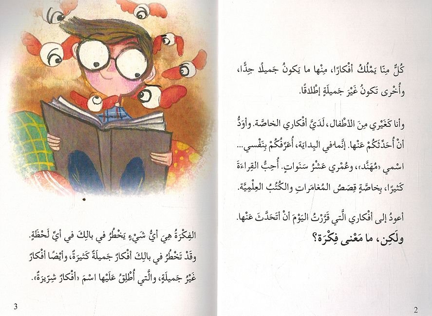 أنا اسمي (مهند) وعمري عشر سنوات، وقررت اليوم أن أحدثكم عن أفكاري الجميلة وكيف أنجح في الاحتفاظ بها، وعن أفكاري الشريرة وكيف يمكنني التخلص منها>؟!
