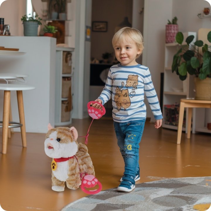 الحركة والتفاعل: يمكن للقطة المشي، هز ذيلها، وتحريك رأسها بشكل واقعي.