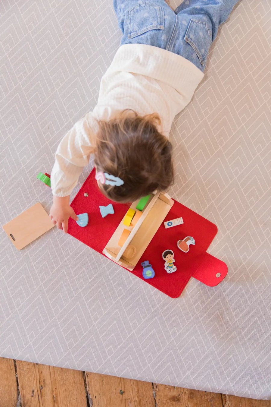 - البيت يفتح ليصبح مساحة لعب صغيرة، ثم يُغلق ليُخزن كل القطع بداخله بشكل منظم.