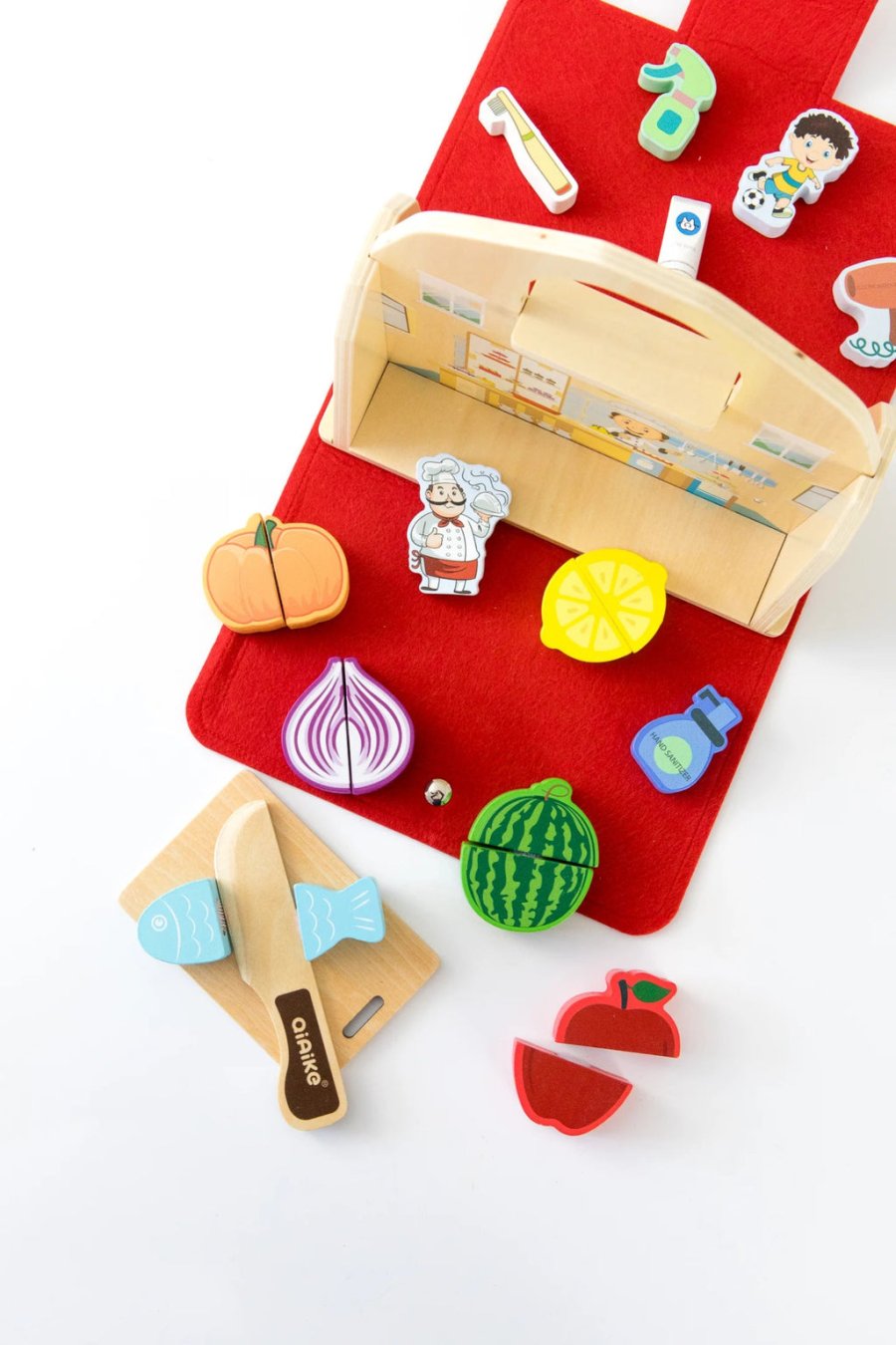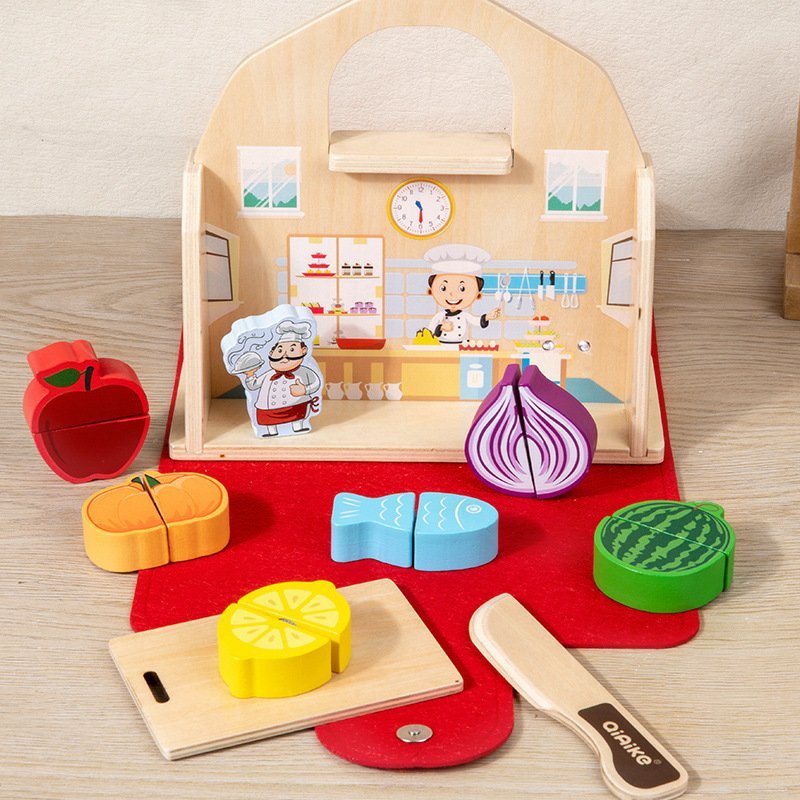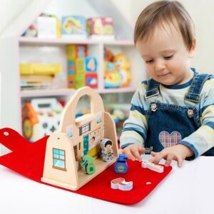 - تحتوي على أثاث خشبي مصغر، أدوات طعام، وشخصيات صغيرة للعب التخيلي.