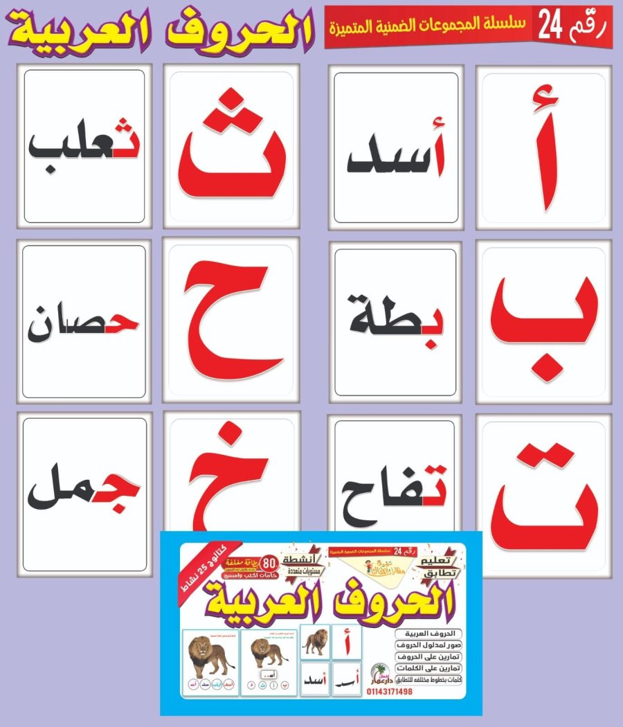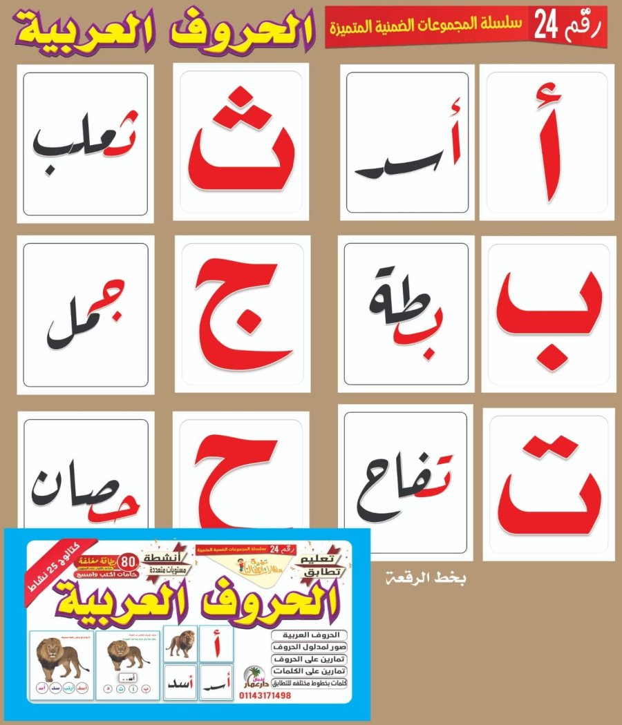 كلمات بخط الرقعه (فونت مختلف) للمطابقه بين الحروف والكلمات عشان الطفل يكون فاهم التطابق ومش حافظه (مفهوم التعميم)