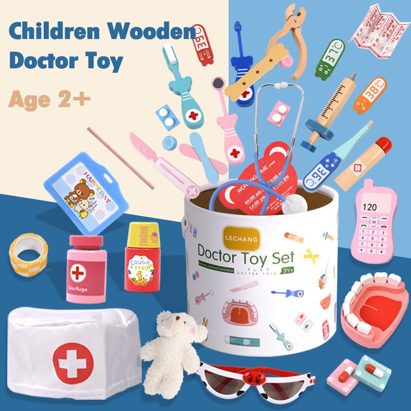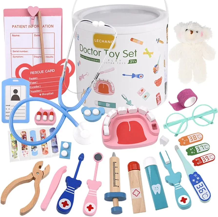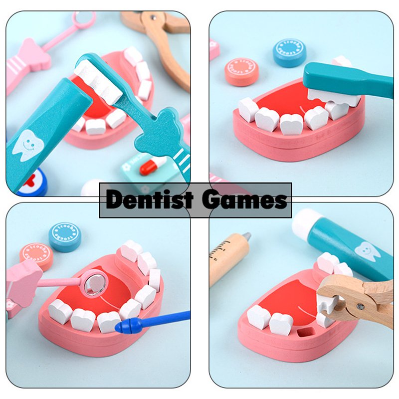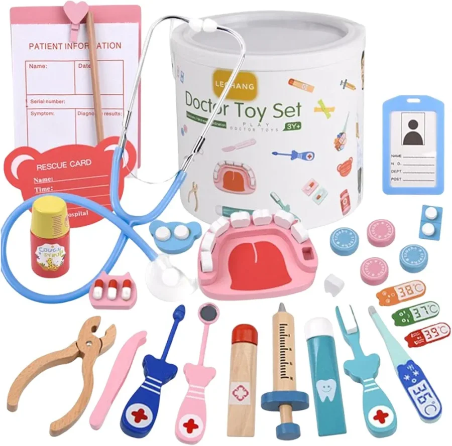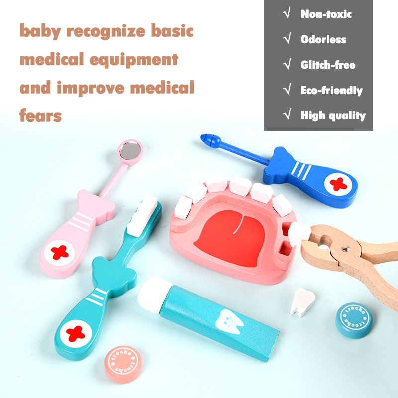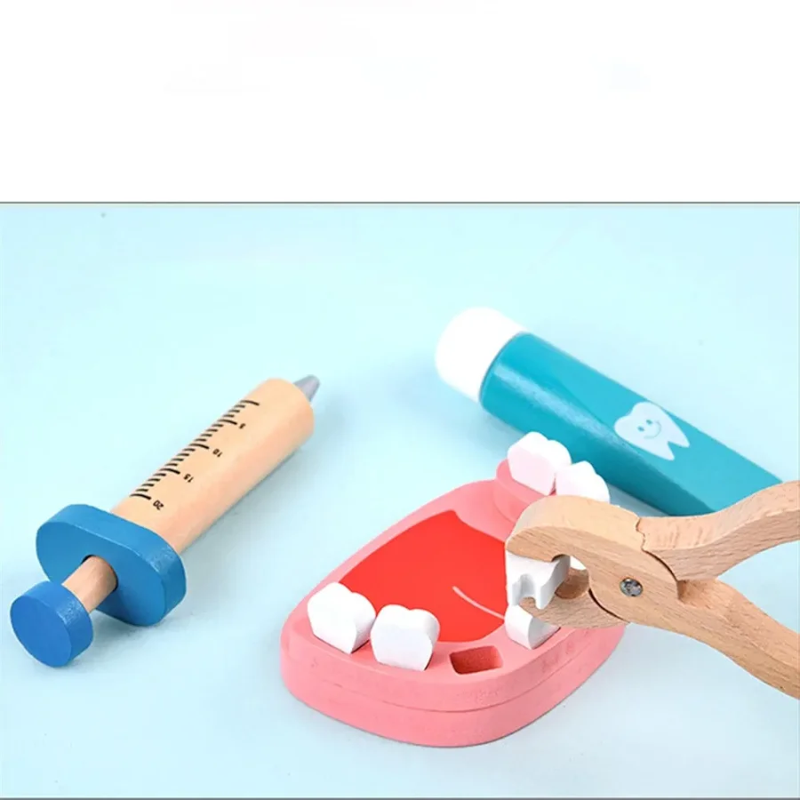 هذا الطقم مصمم لمحاكاة أدوات طب الأسنان والطب العام، وهو مصنوع من الخشب الطبيعي عالي الجودة.